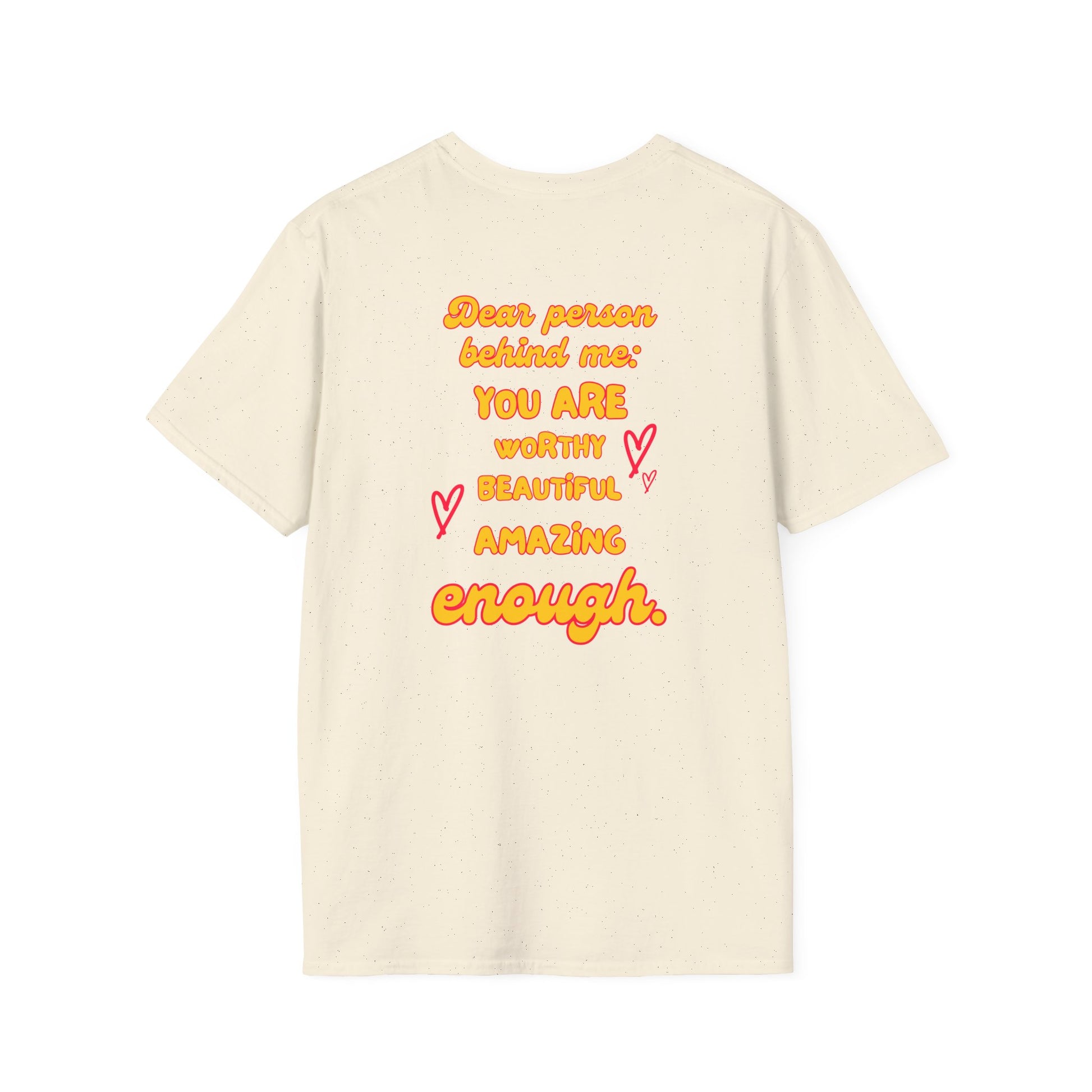 Sometimes a shirt is more than a shirt—this one is a love letter to the world. The “Dear Person Behind Me” tee is designed to sprinkle joy and affirmation wherever you go. With bold, sunshine-inspired lettering and a message of worth, beauty, and strength, it’s like wearing a warm hug.